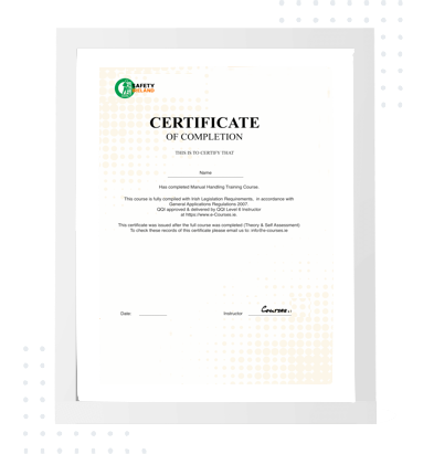 To verify this certificate, please visit https://safetycoursesonline.ie/verify-certification.html
